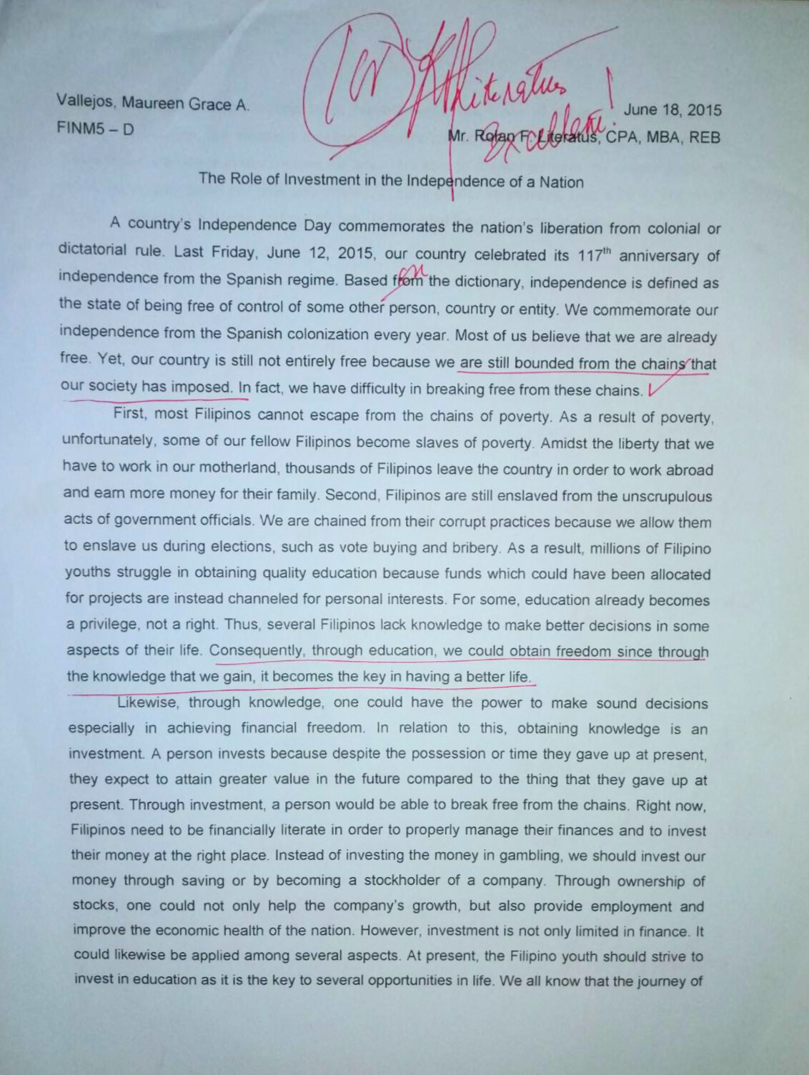 The Philippines still has a long way to go to be truly free, but if we educate ourselves, think critically, invest in leaders who think of the people’s welfares instead of their interests, and not condone the acts of corruption in our community and workplaces, these small acts become ripple effects that can influence others and for the betterment of our society.